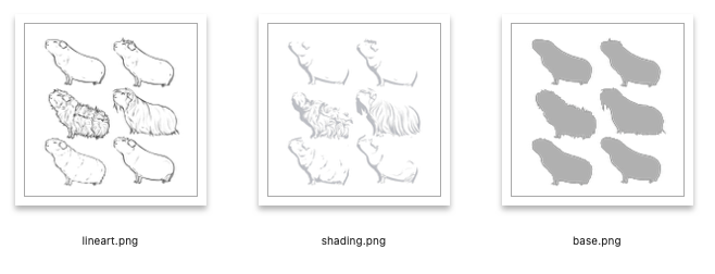 - DIY folder - if your software of choice don't support .psd, you have there all the layers in .png, so you can just easily import them into your program. I recommend to put the shading to multiply mode and you need to use clipping (the shadows are not cut-out).