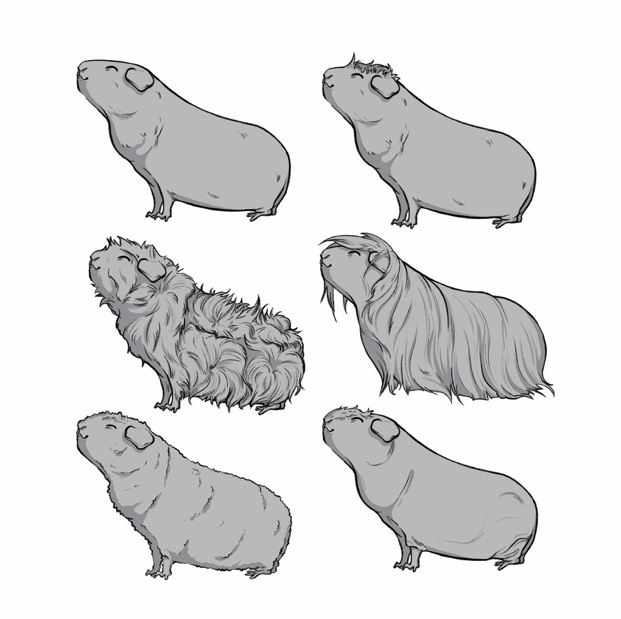 Base containing 6 different guinea pig breeds.